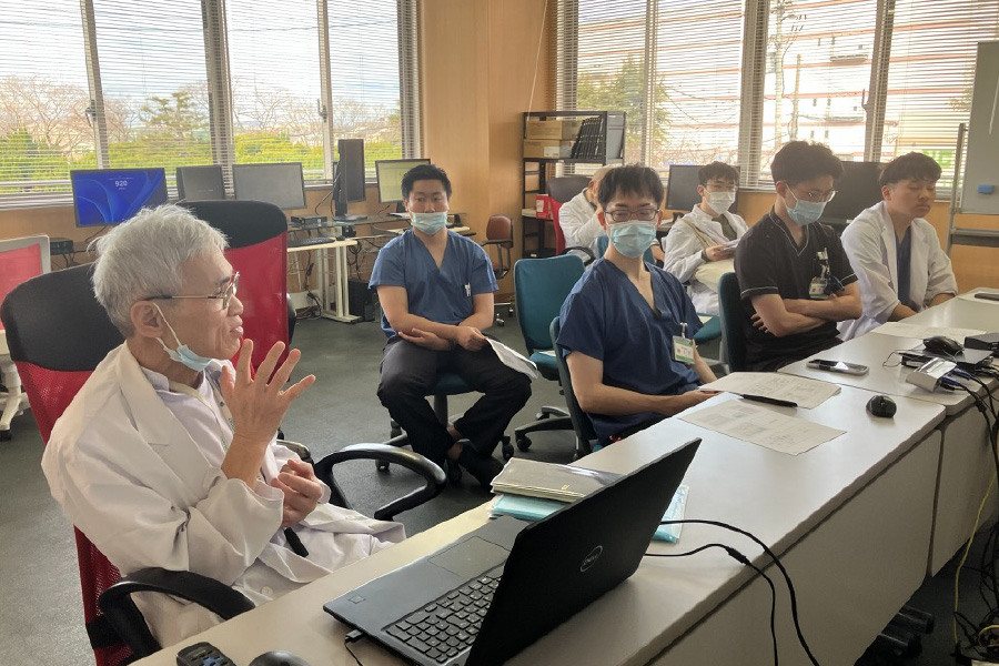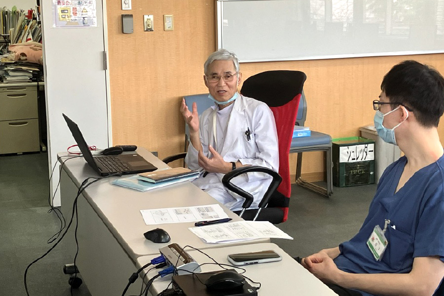 講義後、研修医へアドバイスしている様子です。