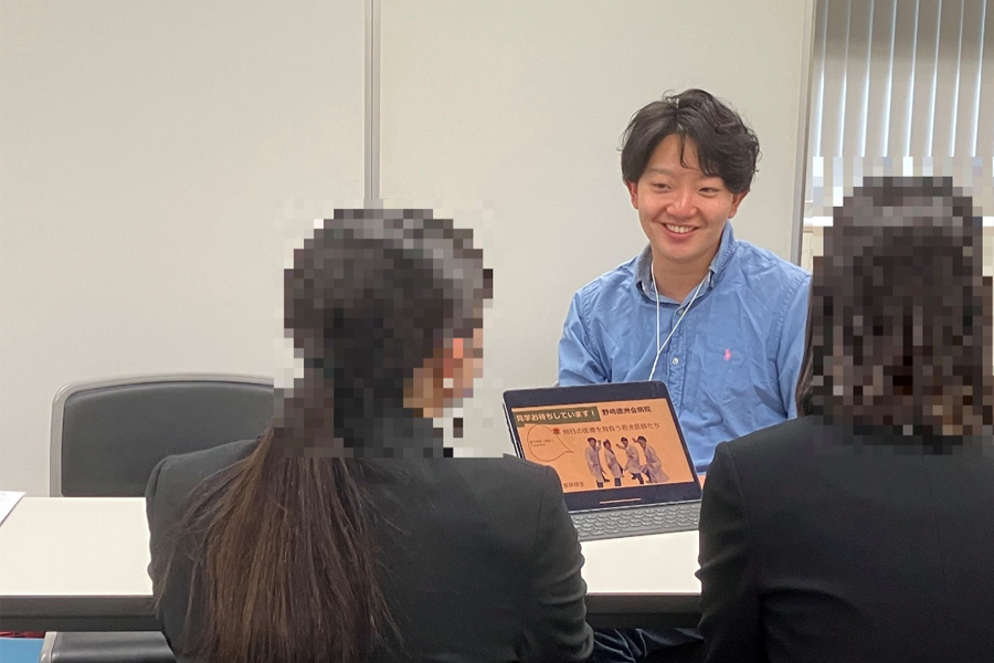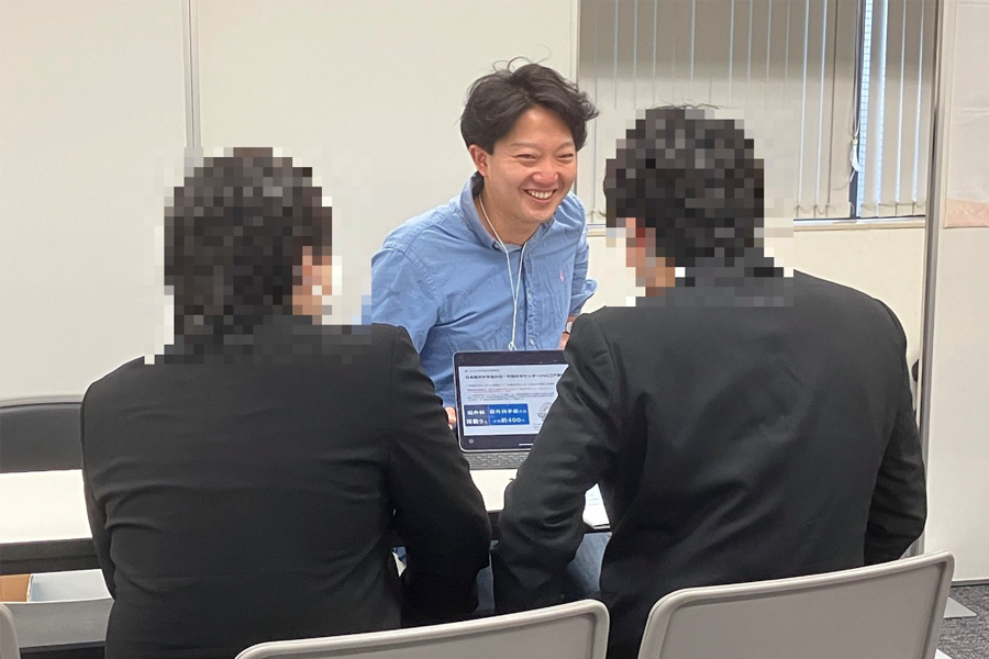自分が野崎を選んだ理由のエピソードや、この1ヶ月で学んだことや、アットホームな病院の雰囲気等を自分の言葉でじっくり学生さんに話してくれました。当院のブースには12名の多くの学生さんが参加してくれてとても嬉しかったです。ブースに参加して頂いた学生さん、ぜひ当院への見学をお待ちしております!