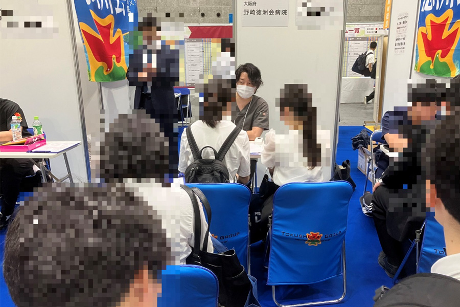 11:00~の開始から17:00終了まで、休む間無く、全力投球の病院プレゼンでした!ご自身がこの約1年3か月経験した症例をはじめ、当院が研修医の希望を聞き入れてくれる自由度の高い研修体制があり、病院全体もアットホームな環境である点を訴求して頂きました。地元大阪での開催ということもあり、当院のブースには40名の多くの学生さんが参加してくれてとても嬉しかったです。ブースに参加して頂いた学生さん、ぜひ当院への見学をお待ちしております!