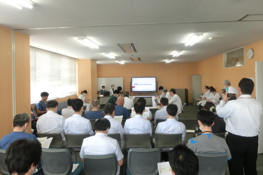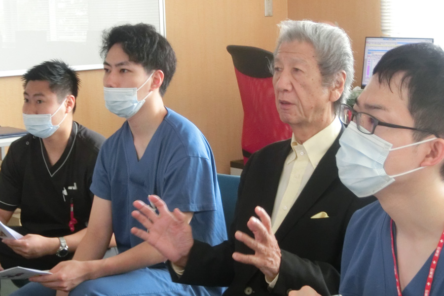 「わざわざビデオにしたスライドを流しての講演、研修医8名相手と少ない聴衆だが、距離感と真剣な目が嬉しい」