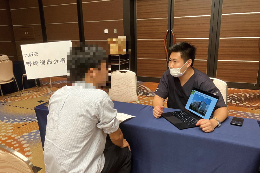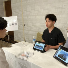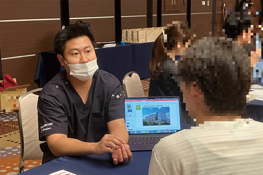 現在、自由選択の呼吸器外科研修で指導医のもと手術を積極的に経験できる環境である点を中心に、自分の興味のある診療科を自由に学べる環境、当院のアットホームな雰囲気の良さをアピールして頂きました当院のブースには5名と多くの学生さんが参加頂きました。
