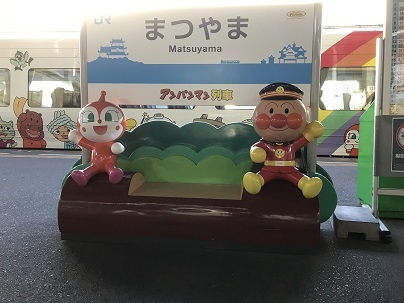 松山駅からの帰りは、アンパン列車に乗って大阪に戻りました。