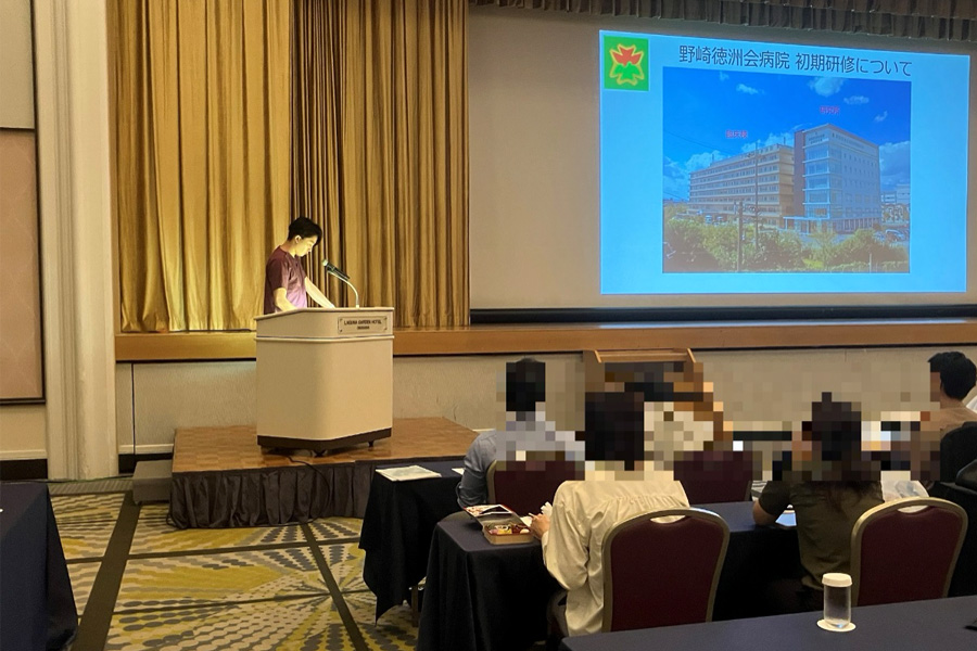 1年次研修医の小林先生が初めて徳洲会グループ説明会に参加して頂きました。今回は、前半は各病院2分の病院プレゼンがあるスクール形式での開催でした。2分での病院プレゼンでは、当院の充実した研修室の設備での過ごしやすさや病院の雰囲気の良さをアピールして頂きました。