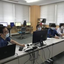 レクチャー前の医局での様子です。(少し研修医の先生方、緊張の様子です。)