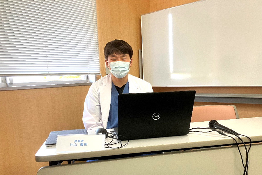 今回は、1年次研修医の片山先生です。「長期間の骨吸収抑制薬内服による非定型骨折に至った一例」を発表してくれました。