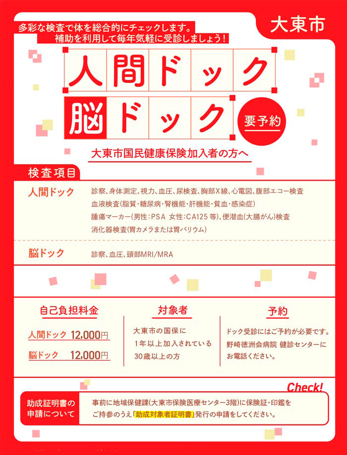 • 大東市国保助成 人間ドック・脳ドック